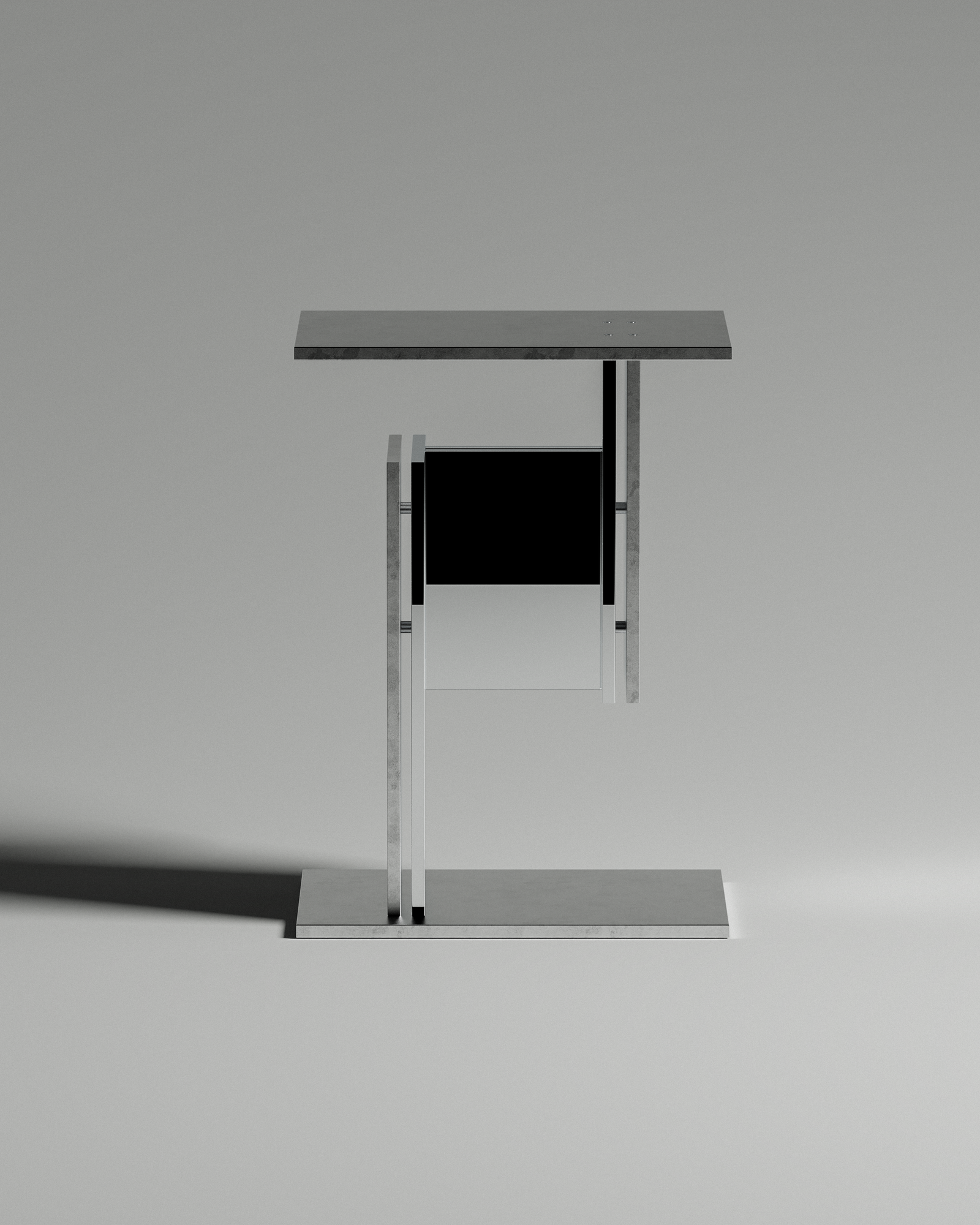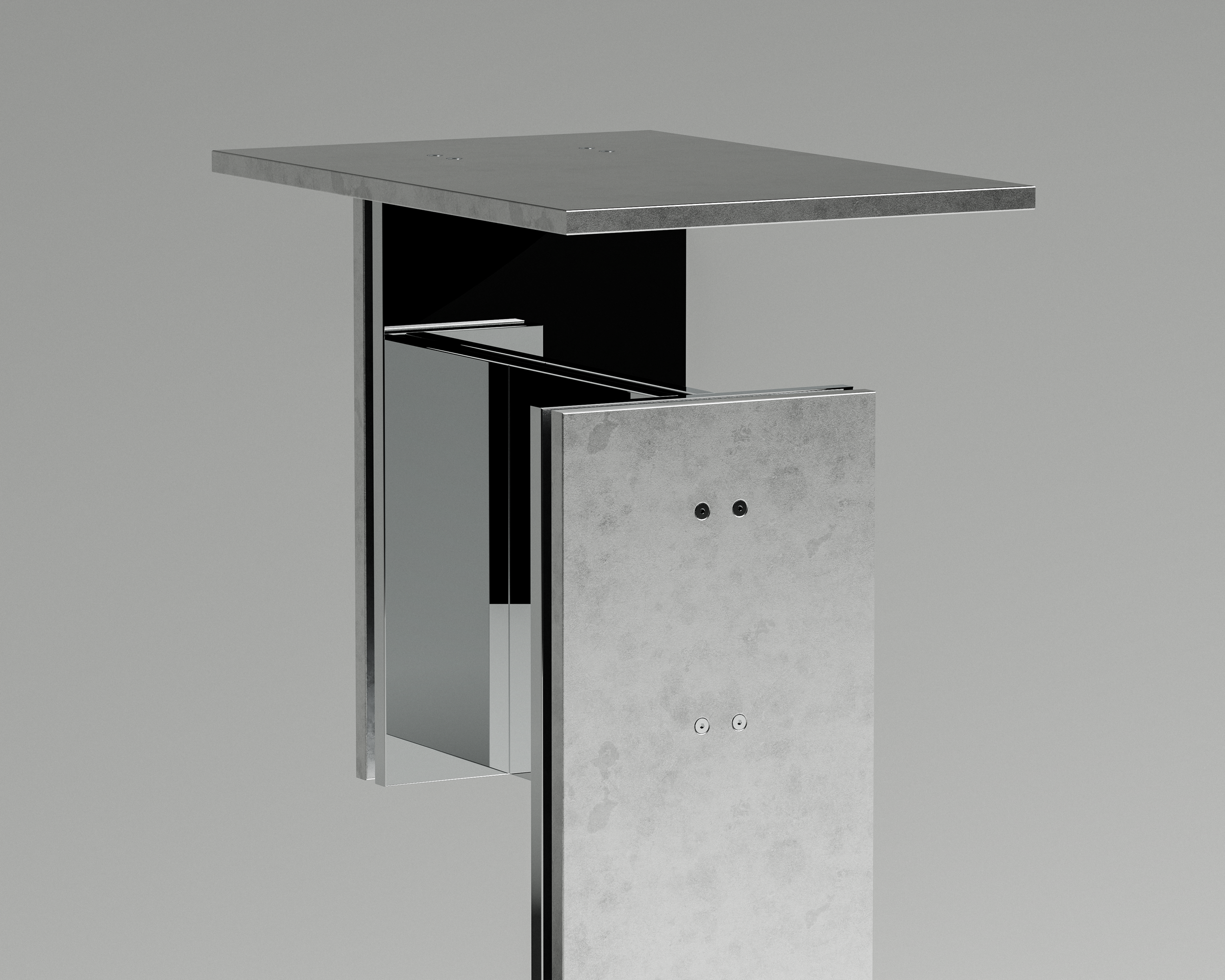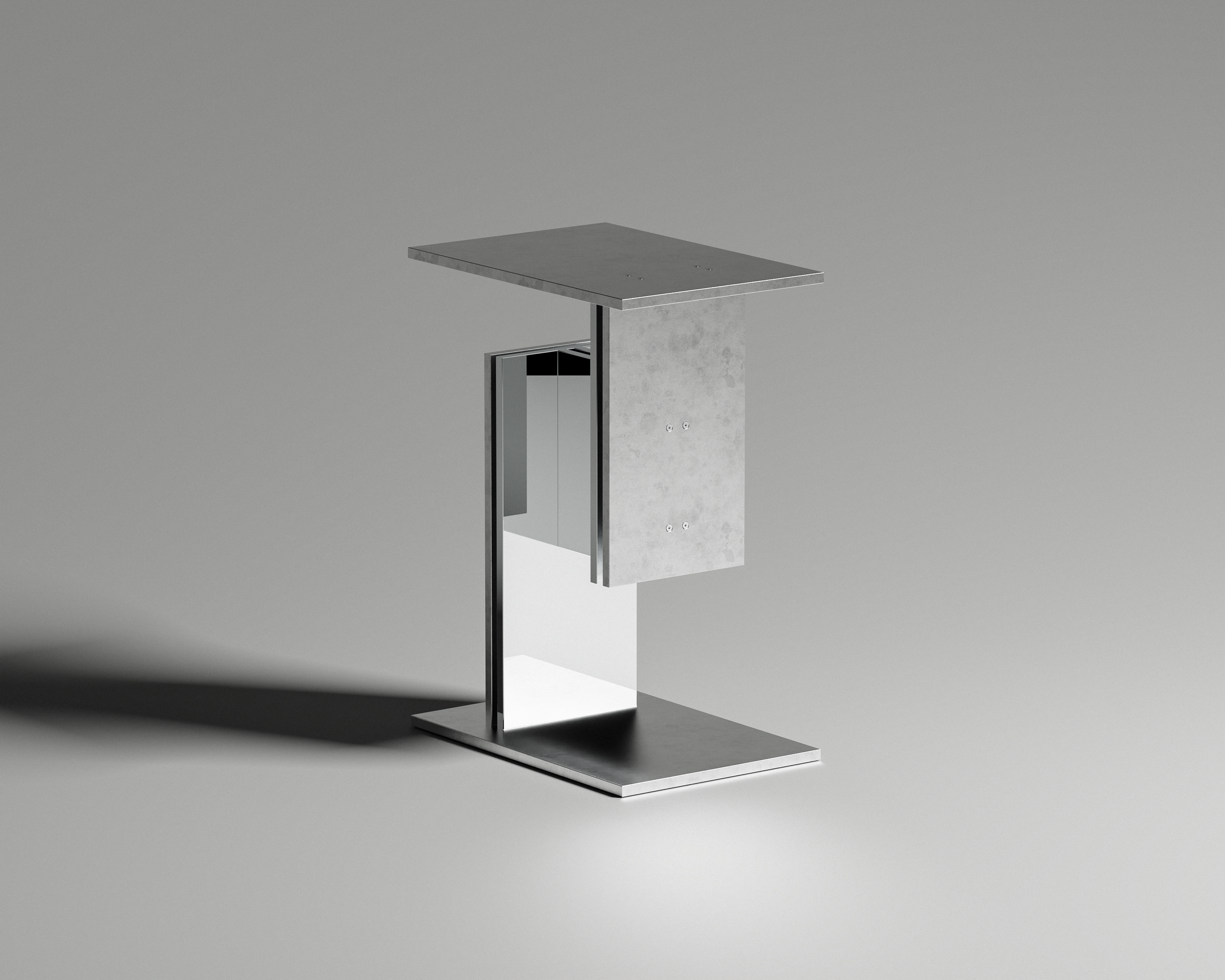 SLVR_TYP celebrates the ideation and process driven nature of the design. The mix of polished and raw metal highlights its asymmetrical form, while exposed screws intentionally reveal the assembly, celebrating construction rather than concealing it.